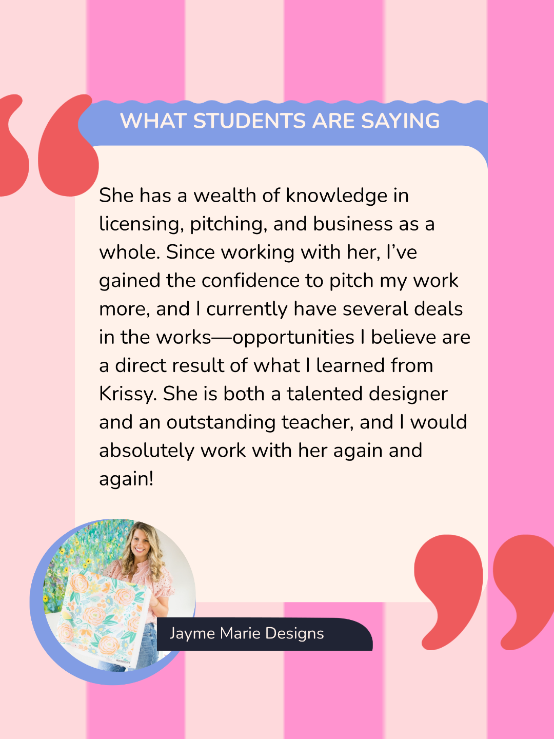 Step into an immersive, all encompassing course where you will learn all the strategies for building your art business into an in-demand licensed brand in a step-by-step process. This is perfect for anyone who is really serious about art licensing and wants to take their business to the next level.